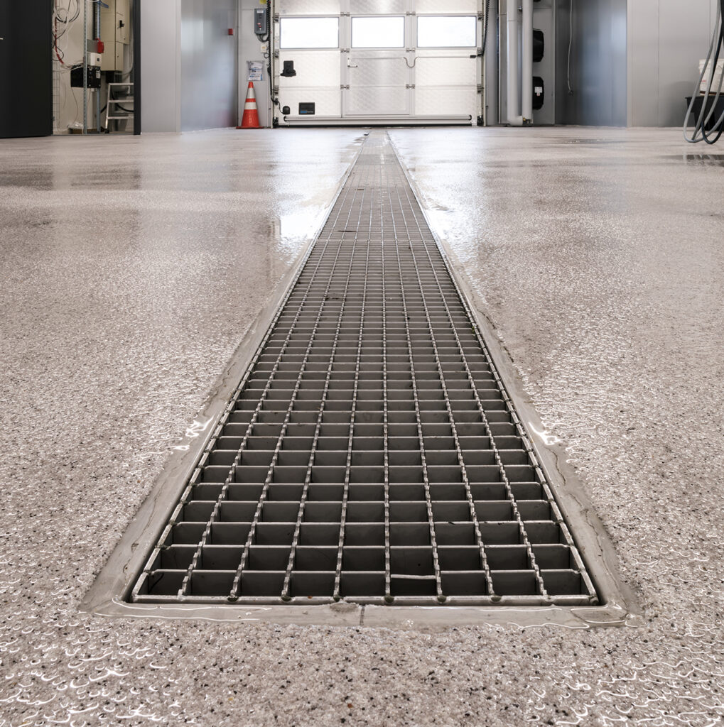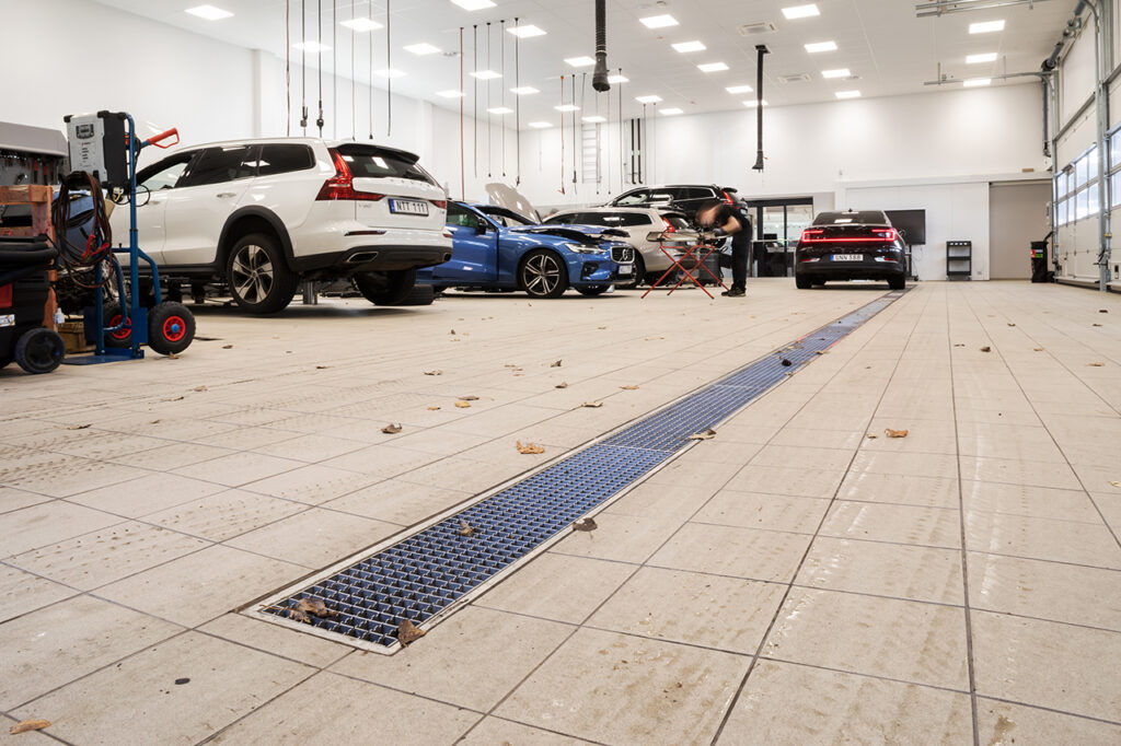 En viktig del av satsningen var att säkra avrinningen i de delar av anläggningen som dagligen utsätts för vatten, kemikalier och tung belastning från fordon.