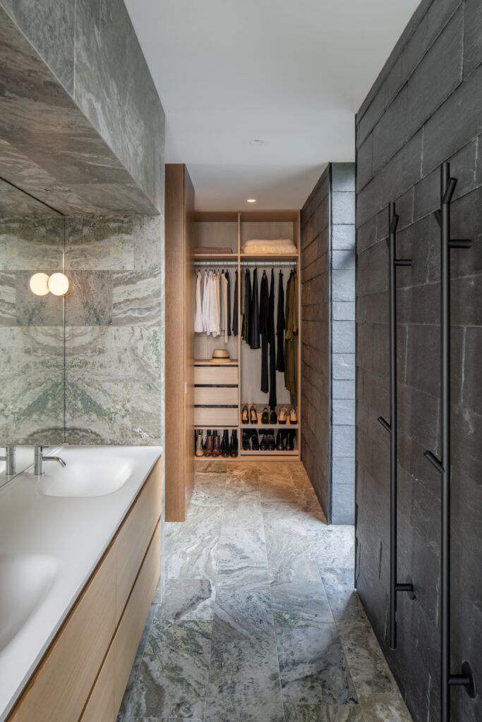 I Villa Svanshall står naturmaterialen i centrum. Badrummet är kompromisslöst klätt i Kolmårdsmarmor från Borghamns Stenförädling, genomfört av Skånska Kakel. Varje platta har valts med omsorg för att lyfta fram stenens unika ådring och skapa en sömlös helhet. Resultatet är ett badrum som andas tidlös elegans och exklusivitet.