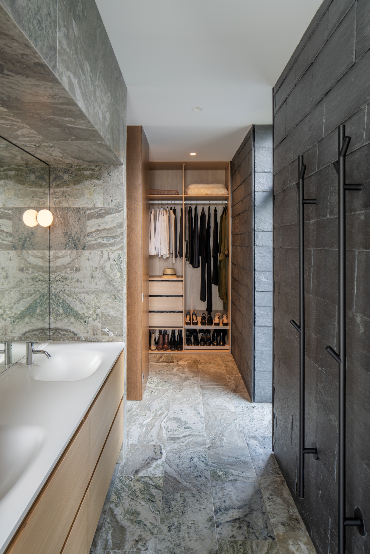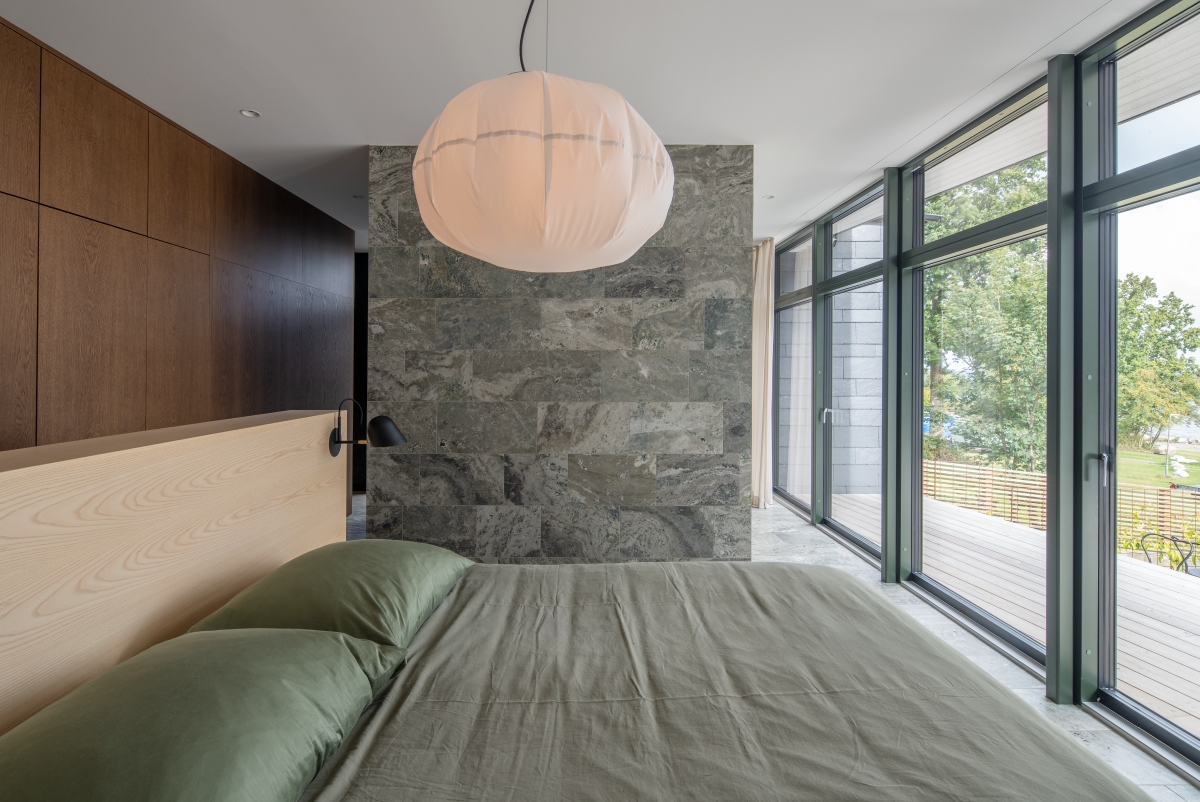 I Villa Svanshall står naturmaterialen i centrum. Badrummet är kompromisslöst klätt i Kolmårdsmarmor från Borghamns Stenförädling, genomfört av Skånska Kakel. Varje platta har valts med omsorg för att lyfta fram stenens unika ådring och skapa en sömlös helhet. Resultatet är ett badrum som andas tidlös elegans och exklusivitet.